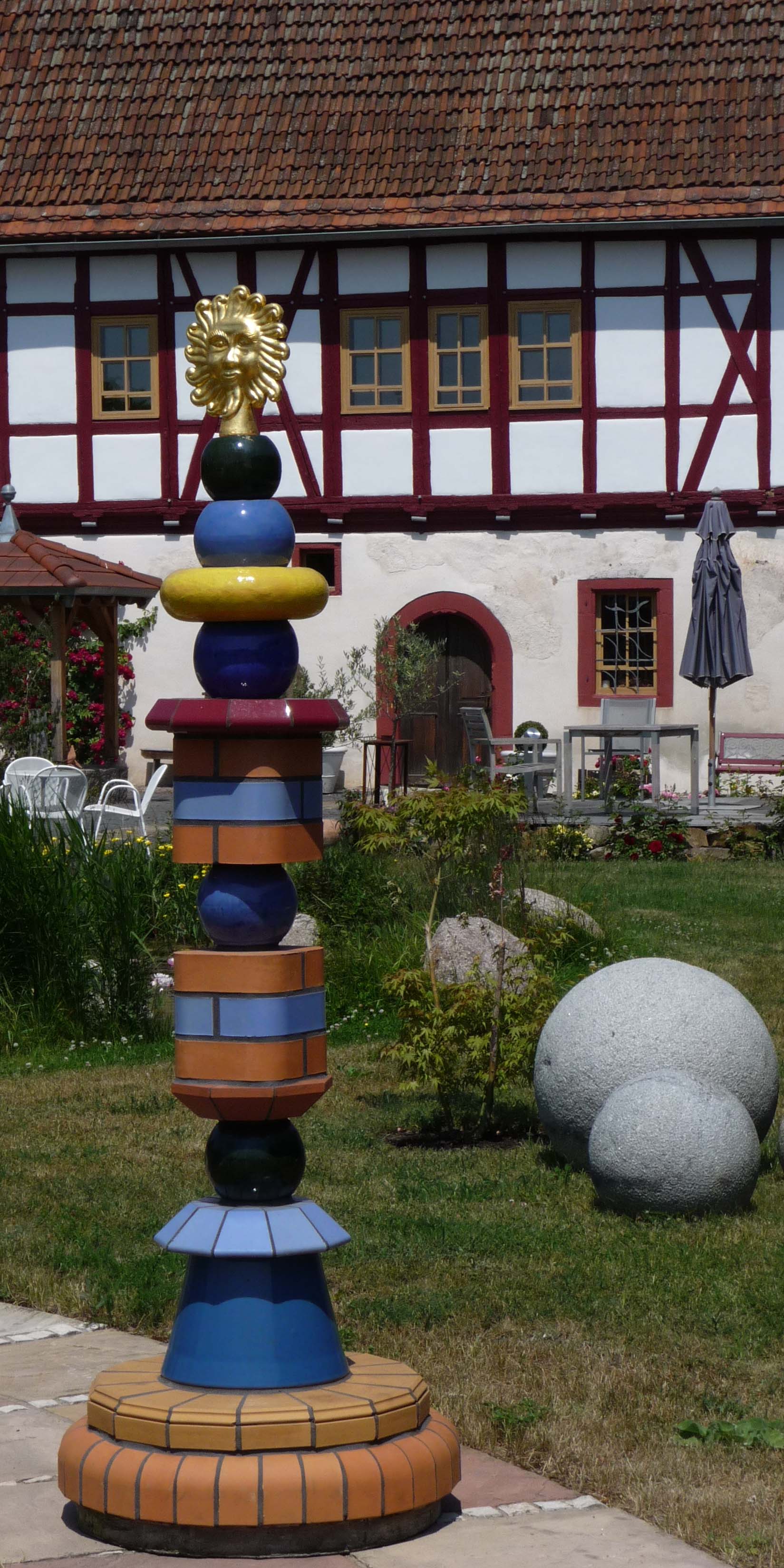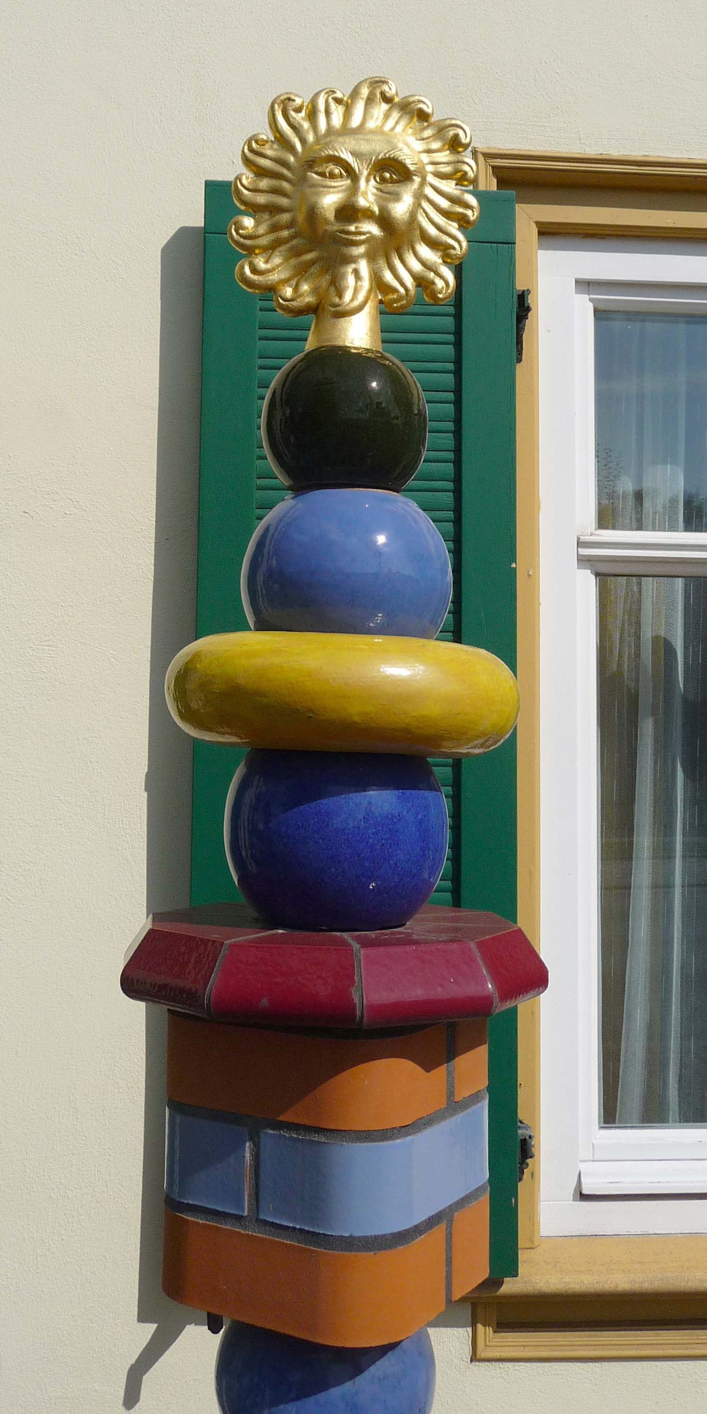 Holen Sie sich auch an Regentagen die goldene Sonne ich Ihren Garten! Diese hohe schlanke Säule wirkt durch die Vergoldung der Sonne mit 23,75 Karat Rosenoble -Doppelgold besonders strahlend und freundlich. Durch Ihre Schlankheit wirkt sie nicht nur sehr schön in großen, sondern garantiert auch in kleineren Gärten oder Plätzen. Sie besteht aus glasierter Keramik und nichtglasierten Klinkern. |