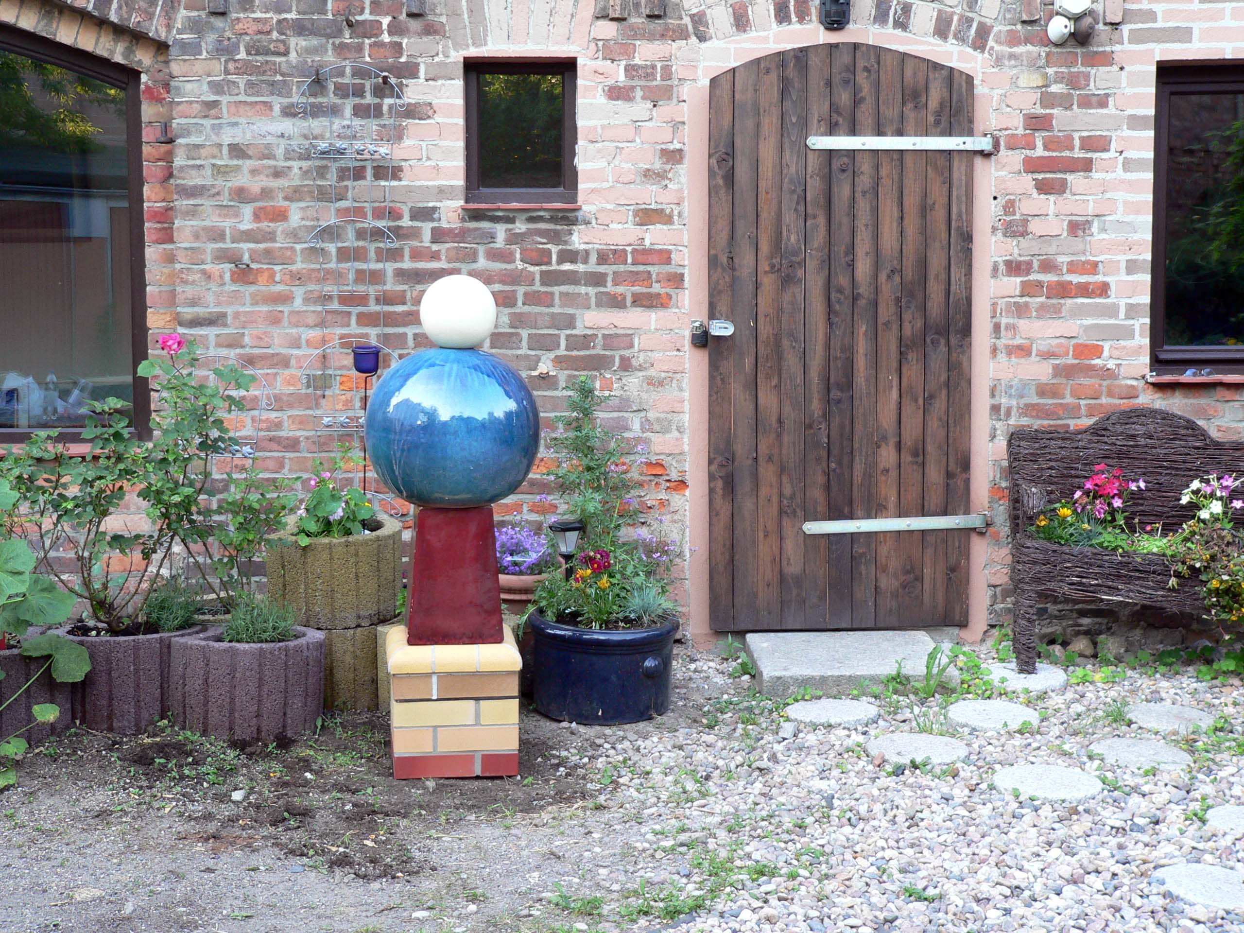 Grundfläche: 36 x 36 cm Große Kugel: Ø 50 cm Höhe: 155 cm |